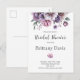 Anuncie seu chá de panela com estilo com nossa Lavanda de Chá de panela Watercolor Floral Postcard. Apresentando uma delicada mistura de matizes de lavanda macia e sotaques florais de aquarela, esse elegante design expele encanto e sofisticação. Perfeito para uma festa de jardim romântica ou uma reunião de noivas, este cartão postal faz os convidados convidados sem esforço e bonitos. Personalize-o com os detalhes do evento e envie um toque de hetero de elegância floral para sua caixa de correio.