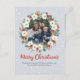 Um belo cartão postal de cartão com fotos de coroa floral de Natal pode ser personalizado com sua própria imagem e mensagem apresentando uma bela tipografia manuscrita e um fundo de neve. © Mini Moi Impressões