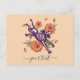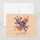 Celebre em estilo com este cartão postal de cão esquelético engraçado com um filhote roxo vibrante e marigóis festivos — perfeito para Día de los Muertos ou correio de caracol do Halloween. Excelente para amantes de animais de estimação, vibrações divertidas do outono ou saudações fofinhas. Personalize o texto no fundo para torná-lo seu!