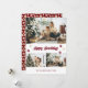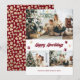 Cartão de Feliz Natal, vermelho e dourado moderno, com três fotos e impressões de pata na frente e um fundo vermelho com estrelas douradas na parte de trás. Personalize facilmente este elegante cartão de feriado fotográfico com as suas fotografias, o nome da família e o ano.