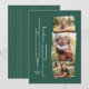 Uma cinza e um tratamento alegre e empilhado branco fica ao lado de uma colagem de três fotos em um fundo verde. O backer de coordenação distribuído é uma cor correspondente. Este cartão de férias é a maneira perfeita de enviar Cartões de natal felizes.