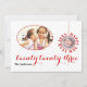 O moderno, simples, mas elegante e na moda, cartão com fotos de Ano Novo de 2023, com uma fotografia oval, outra foto pendurada com o texto curvo "Feliz ano novo" à sua volta e também o texto "vinte e três" a vermelho.