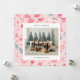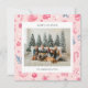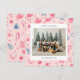 Cartão de Natal com ilustrações temáticas bonitas de Natal num esquema de cores pastel com uma fotografia de família emparelhada com um cartões de natal e o seu nome e ano numa fonte sans serif.