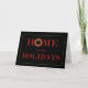 Natal "Home for the Holidays" numa imagem de texto vermelho impressionante num fundo preto. A palavra "Home" tem uma coroa verde e vermelha colorida, substituída pela letra "O". Você pode PERSONALIZAR o texto dentro.