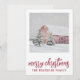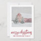 Simples celeiro vermelho na neve de inverno cartão de Natal. Adicione o nome da sua família. Estilo country.