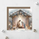 Esta cena serena de Natividade captura a beleza pacífica da Sagrada Família sob um estábulo rústico de madeira, suavemente iluminada por lanternas e cercada por uma neve suave. O design apresenta Maria, José e o menino Jesus em um momento caloroso e reverente, acentuado por flores delicadas de inverno, galhos de pinheiro cobertos de neve e luzes cintilantes. Pombas e cestas tecidas adicionam um charme pastoral, enquanto o estilo geral de aquarela suave evoca uma atmosfera tranquila e sagrada. Ideal para aqueles que buscam decoração de Natal espiritual ou religiosa, esta obra de arte combina simbolismo atemporal com toques sazonais elegantes, criando uma imagem festiva tocante e reflexiva. Arte gerada por IA.