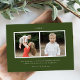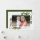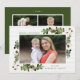 Nosso cartão de Natal exclusivo e rústico exibe sua foto favorita emoldurada por dois buquês de folhas verdejantes em aquarela e algodão com um fundo de madeira shiplap bege. Personalize a frente do cartão de Natal adicionando uma saudação personalizada e o sobrenome da sua família. A parte traseira do cartão de Natal em estilo fazenda apresenta mais duas das suas fotos, o ano, uma curta mensagem personalizada e seus nomes. Projetado para combinar com nossa coleção de Natal Southern Charm.