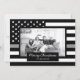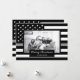 Compartilhe seus desejos de feriado nesta época de Natal com um cartão único personalizado fotográfico achatado. Este design apresenta uma bandeira americana branca e preta com uma fina linha cinzenta para decorar em torno da sua foto de família. Abaixo da sua foto está uma área de preto para o sentimento que diz "Feliz Natal" e seu nome de família que pode ser personalizado. A parte de trás do cartão também tem a fina linha cinzenta bandeira americana para aqueles que são oficiais de correção. Substitua a foto mostrada por uma design que sua família e amigos adorarão! Elaborado por ©Tim Coffey. Fotografia © Storytree Studios, Stanford, CA.