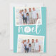 O cartão de feriado estilo chic costeiro adiciona talento de praia aos seus Cartões de natal. Perfeito para compartilhar fotos de férias, ou para famílias que vivem em regiões costeiras, tropicais, de clima quente ou insulares, este design iluminado apresenta duas fotos favoritas em um fundo de turquesa tropical com "noel" no centro. Um dólar de areia toma o lugar da letra "o" para um toque litorâneo fofo. Adicione sua mensagem de feriado personalizada e seus nomes ou nomes de família, juntamente com uma foto adicional e uma mensagem personalizada no verso.