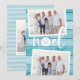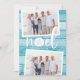 O cartão de feriado estilo chic costeiro adiciona talento de praia aos seus Cartões de natal. Perfeito para compartilhar fotos de férias, ou para famílias que vivem em regiões costeiras, tropicais, de clima quente ou insulares, este design iluminado apresenta duas fotos favoritas em um fundo de madeira turquesa falsa da praia com "noel" no centro. Um dólar de areia toma o lugar da letra "o" para um toque litorâneo fofo. Adicione sua mensagem de feriado personalizada e seus nomes ou nomes de família, juntamente com uma foto adicional e uma mensagem personalizada no verso.