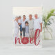 O cartão de feriado estilo chic costeiro adiciona talento de praia aos seus Cartões de natal. Perfeito para compartilhar uma foto de férias, ou para famílias que vivem em regiões costeiras, tropicais, quentes condições meteorológicas ou insulares, este elegante design apresenta sua foto favorita vertical ou orientada a retratos com "noel" sobreposto em letras vermelhas festivas e um dólar tomando o lugar da letra "o". Adicione sua mensagem de feriado personalizada e seus nomes ou nomes de família, juntamente com três fotos adicionais e uma mensagem personalizada no verso.
