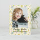 Lindo cartão de Páscoa personalizado com coelhos e padrão de cenouras, foto personalizada e nome da família.