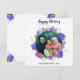Ilustração adorável do Ano Novo Persa Feliz Norooz com uma coroa de flores com híacintos roxos, rosa e azuis. Fácil de alterar a foto de amostra com a sua própria imagem para personalizar o produto.