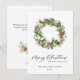 Coroa de pinheiro com pinhas e cartão de Natal de feriado.