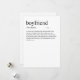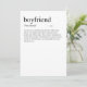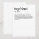 Adicione um pouco de humor e estilo ao seu presente do Dia dos Namorados com este cartão engraçado "Definição de Namorado". Com tipografia espirituosa e minimalista e um visual limpo, ele transmite uma mensagem divertida e leve que certamente fará seu parceiro sorrir. Há também um espaço em branco onde você pode incluir sua mensagem manuscrita personalizada para ele. Quer uma característica espirituosa e personalizada adicionada à definição? Entre em contato comigo em: shahirah.creates92@gmail.com, e eu farei com que seja exclusivamente seu.