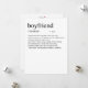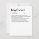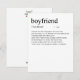 Adicione um pouco de humor e estilo ao seu presente do Dia dos Namorados com este cartão engraçado "Definição de Namorado". Com tipografia espirituosa e minimalista e um visual limpo, ele transmite uma mensagem divertida e leve que certamente fará seu parceiro sorrir. Há também um espaço em branco onde você pode incluir sua mensagem manuscrita personalizada para ele. Quer uma característica espirituosa e personalizada adicionada à definição? Entre em contato comigo em: shahirah.creates92@gmail.com, e farei com que seja única para você.