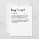 Adicione um pouco de humor e estilo ao seu presente do Dia dos Namorados com este cartão engraçado "Definição de Namorado". Com tipografia espirituosa e minimalista e um visual limpo, ele transmite uma mensagem divertida e leve que certamente fará seu parceiro sorrir. Há também um espaço em branco onde você pode incluir sua mensagem manuscrita personalizada para ele. Quer uma característica espirituosa e personalizada adicionada à definição? Entre em contato comigo pelo e-mail: shahirah.creates92@gmail.com, e farei algo único para você.