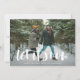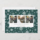 Cartão com fotos festivo apresenta sua foto favorita horizontal ou orientada a paisagem em cheio sangrado, com "deixe-a nevar" sobreposta em tipografia branca de pincel com letra branca. Personalize a frente do cartão com seus nomes e mensagens de feriado curtas, e adicione três fotos adicionais no verso em um layout de colagem em um fundo padrão de floco de neve verde de spruce, juntamente com uma mensagem pessoal personalizada. Para um vazio de volta, simplesmente exclua os modelos de fotos e a camada branca matte.