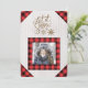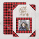 Adorável cartão de Natal com foto “Deixe nevar” com moldura xadrez vermelha de búfalo e recorta as bordas deste cartão adorável e pitoresco.