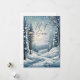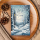 Uma ilustração do vetor de paisagem de natal. Floresta de inverno de neve onde árvores altas estão em pé numa noite de inverno tranquila. As postas de lâmpada festiva dão uma luz quente no trajeto coberto pela neve abaixo. Cada galho é adornado com flocos de neve. Sombras de cinzentos azuis, brancos e macios se juntam para criar uma cena harmoniosa. Personalize-o com o seu nome de família. Para mais personalização, entre em contato comigo em kbasandra@gmail.com.