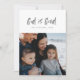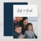 Este cartão com fotos apresenta a mensagem religiosa cristã "Deus é bom" num olhar manuscrito. Perfeito para mostrar todas as suas bênçãos nesta temporada de festas, esta placa vertical apresenta uma grande forma de fotografia quadrada. A parte de trás é marinho azul com pontos brancos de neve, mas a cor pode ser ajustada clicando em "personalizar".