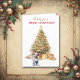 Na frente deste cartão de Natal, um adorável cachorrinho Dalmaciano veste um chapéu de Papai Noel vermelho e branco e se senta em frente a uma árvore de Natal. A árvore é decorada em ouro, e pacotes de presentes correspondentes estão embaixo dela. O texto vermelho e dourado diz "Desejando-lhe um NATAL MERRY". Campos de texto dentro que você pode personalizar para qualquer coisa que quiser. Certifique-se de ver os outros cartões temáticos e presentes do cão Dalmaciano em nossa loja.