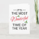 Este charmoso cartão de saudação de Natal será perfeito para desejar alegria de férias aos seus amigos e familiares. Esta design apresenta a letra "É a época mais maravilhosa do ano" em preto e vermelho, com sotaque de Holly.