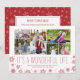 Este cartão de fotos múltiplo contém 6 fotos da família e a frase "É uma vida maravilhosa" - perfeita para celebrar um ano de memórias através de fotos no seu cartão de Natal. Adicione uma mensagem de feriado personalizada ao verso e personalize as cores para corresponder às fotos da sua família!
