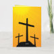 A placa de Páscoa personalizada de aspas inspiracionais apresenta três cruzes com 'Ele está vivo' na frente e 'Eu sou perdoado' no dentro. A saudação pode ser modificada.
