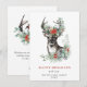 Cartão de Natal festivo com cervo e poinsétia