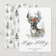 Festividades Elegante cartão de Natal com cervo e poinsétia