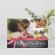 O cartão com fotos festivo apresenta três das suas imagens favoritas adornadas com uma ilustração do arco de fita de cor vermelha. "Feliz Natal" aparece debaixo de letras brancas sobre um fundo de chalkboard rústico. Personalize com seus nomes e o ano.