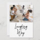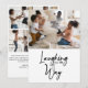 Engraçado Rir Todo o Caminho dizendo no cartão de feriado de script de pincel escrito à mão com uma foto na frente e quatro fotos com sua mensagem e nomes no verso. Este cartão será um guardião e as pessoas vão adorar.