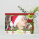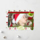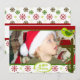 Bonito cartão com fotos de Natal com nosso design Snowflakes Enviando Snowflakes, fácil de personalizar com seu texto e foto. Um passarinho se senta em uma caixa de correio vermelha, oval lê "Feliz Natal", e muitos flocos de neve de vermelho e verde em branco tanto na frente quanto no verso.