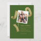 Fresco e moderno com um bom sentimento festivo. Este cartão de Natal de feriado da família apresenta uma combinação de fontes elegantes e modernas em ouro de imitação. O texto FRONT é definido em relação a uma cor verde de fundo da tendência. Personalize a foto, o texto e a escritura para torná-la sua.