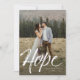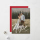 Envie uma mensagem de esperança de feriado com este cartão vertical de uma foto. A tipografia da escrita brutal dá ao cartão uma sensação moderna. As coordenadas do backer vermelho estrelado, mas a cor pode ser alterada clicando em "personalizar". Este cartão esperançoso é a forma perfeita de enviar cartões de natal, especialmente quando anunciamos algo esperançoso como um novo começo - casamentos, bebês e muito mais.