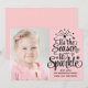 Cartão de Natal cor-de-rosa com texto que diz, "É a estação a brilhar."