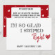 Estou tão feliz por ter nadado direito - cartão de Dia de os namorados. Diga-lhe o quão especial ele é com este cartão de Dia de os namorados. Típica de tendências e um doce coração na frente e Harts Pattern e liens dentro para sua própria mensagem. 1 - Você pode facilmente alterar ou excluir o texto e modificá-lo conforme desejar. clicando em PERSONALIZAR - 2 - Você pode facilmente alterar as cores. clicando em PERSONALIZE == Editar usando a Ferramenta de Design - 3 - Você pode facilmente alterar a Fonte. clicando em PERSONALIZE == Editar usando a Ferramenta de Design -