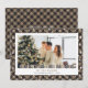 A xadrez de Khaki acredita no cartão mágico de Natal com estrelas e neve caindo em um fundo de xadrez de búfalo preto e khaki. Personalize facilmente este cartão festivo de Natal com sua foto, seu nome de família e seu texto.
