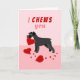 Eu te dou um cartão de Dia de os namorados Schnauzer, um cachorro Schnauzer bonito segurando um coração namorados em um fundo de coração rosa.