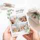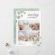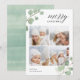 Compartilhe cartões de natal com estes cartões chic de colagem de fotos de Natal com quatro de suas fotos quadradas favoritas emolduradas no topo e no fundo pelas folhas pintadas de eucalipto aquoso em verde pastel. "Feliz Natal" aparece no topo direito numa mistura elegante de caligrafia e letras modernas, e o ano está bem preso a uma das folhas. Personalize com seu nome de família no canto inferior esquerdo.