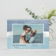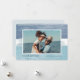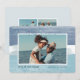 O cartão de feriado do estilo costeiro chinês adiciona talento náutico aos seus Cartões de natal. Perfeito para compartilhar uma foto de férias, ou para famílias que vivem em regiões costeiras, tropicais, quentes condições meteorológicas ou insulares, este elegante design apresenta sua foto horizontal ou orientada à paisagem favorita em um fundo de listras de água verdes e azuis, com brilho azul no topo e no fundo. Adicione sua mensagem de feriado personalizada (mostrada com "mares e saudações") e seus nomes ou nome da família. Personalize as costas com duas fotos adicionais e o ano.