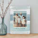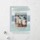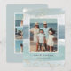 O cartão de feriado do estilo costeiro chinês adiciona talento náutico aos seus Cartões de natal. Perfeito para compartilhar uma foto de férias, ou para famílias que vivem em regiões costeiras, tropicais, de clima quente ou insulares, este elegante design apresenta sua foto favorita em um fundo de listras de aqua e verde-marinho, com brilho sujo no topo e no fundo. Adicione sua mensagem de feriado personalizada (mostrada com "mares e saudações") e seus nomes ou nome da família. Personalize as costas com três fotos adicionais.