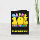 Cartão de aniversário colorido de 10 anos com nome personalizado e mais texto no dentro.
