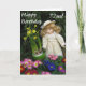 Um belo cartão de 72 anos com bonecos bonito e primatas coloridos e narcisos.