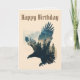 Cartão de aniversário personalizado com majestosa águia voadora e floresta montanhosa com "Parabéns" na tipografia de serifa vintage. Interior bege colorido e traseiro. Também disponível para download instantâneo para compartilhar facilmente com amigos e familiares.