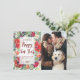 Um cartão de ano novo com fotografia floral e design verde de inverno moderno, com um lado positivo coordenado. Fácil de editar ou excluir os campos de texto na frente para atender às suas necessidades pessoais e mudar a foto para a sua.