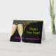Este cartão de saudação de Feliz ano novo apresenta um fundo preto com um confetti e óculos de champanhe de cor brilhante e uma redação personalizável: Feliz ano novo e Desejo-vos um maravilhoso 2013!