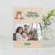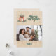 Baivém como fundo, texto verde. Texto e foto na frente. Seu texto e nomes no verso. Feliz Natal é escrito com uma fonte de estilo retrô. Imagem burlap, não é tecido real.