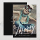 Uma design moderna de uma bela tipografia que lê "Feliz" e mostra uma foto do tamanho do cheio de sua família feliz. Espaço no verso para que você adicione sua mensagem de feriado pessoal ou mais fotos, se desejar. Uma bela saudação contemporânea para qualquer cartões de natal.